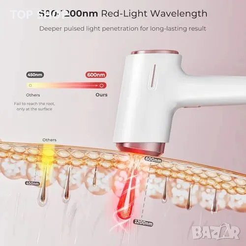 Мощност до 21J и 600nm червена светлина за дълбока и трайна епилация.