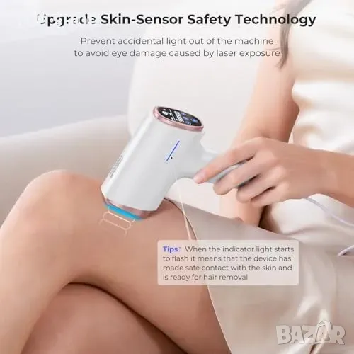 Умен сензор за контакт с кожата за безопасна и ефективна употреба.