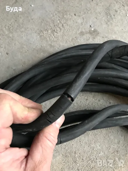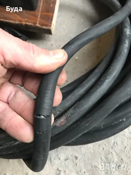 Удължителя е дълъг 25-26 метра и е с кабел ШКПЛ 3х4+2.5, с калайдисани медни жици. На места е напукана външната изолация , но жиците вътре са перфектни. Цената е съобразена със забележките на кабела!