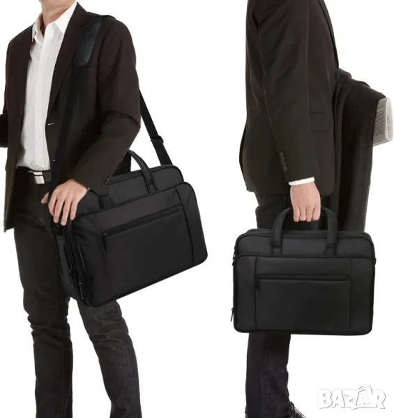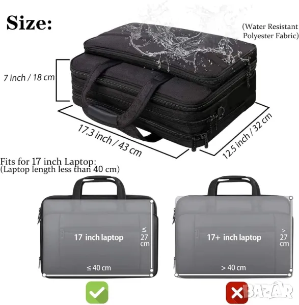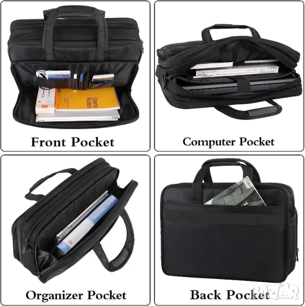Чанта за лаптоп с размери: 43 x 18 x 32 cm, тип месинджър за през рамо с разширяем обем и много отделения. Водоустойчива чанта за бизнес пътуване за лаптоп до 17 инча, ноутбук, таблет, документи. Подходяща за мъже и жени, черна.