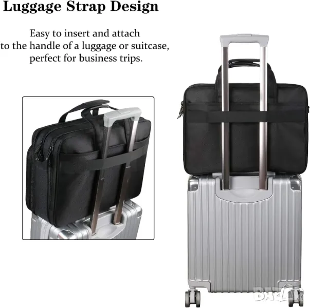* Проектирана за удобство: С каишка на гърба за захващане към телескопичната дръжка за багаж, чантата за лаптоп през рамо може лесно да се закачи на куфара с колела, което ви дава удобен начин за носене на чантата за лаптоп. С дизайна на свалящата се презрамка работната чанта може свободно да се превключва между куфарче за чанта и чанта за рамо. Чудесен спътник за бизнес пътувания или пътешествия, използване в работата и дори в университета.