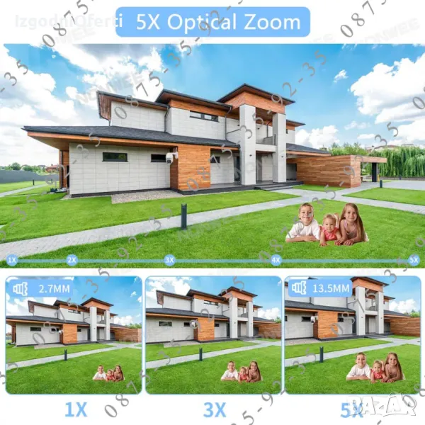 5X оптичен Zoom (променливо фокусно разстояние от 2.7mm до 13.5mm)