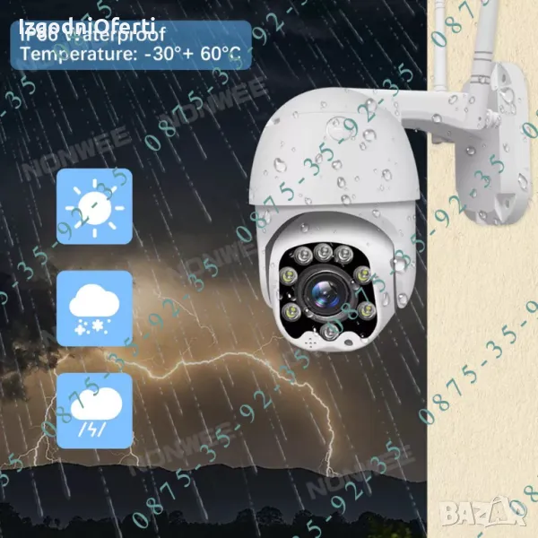 Камерата е ВОДОУСТОЙЧИВА IP66, ПРАХОУСТОЙЧИВА, Устойчива на слънчевата радиация.