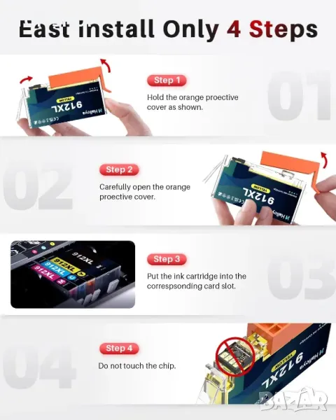 Halloya 912XL мастилени касети за HP 912 XL за OfficeJet 8010 и OfficeJet Pro 8022 (4 касети)