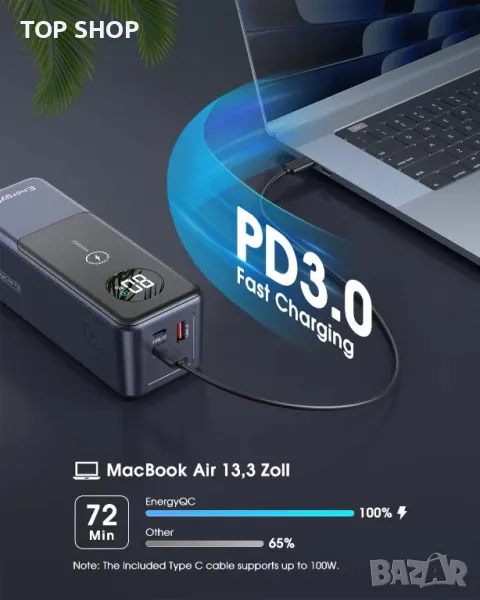 Външна батерия EnergyQC 120W 27000mAh Power Bank USB C 3-Port 99.9Wh PD