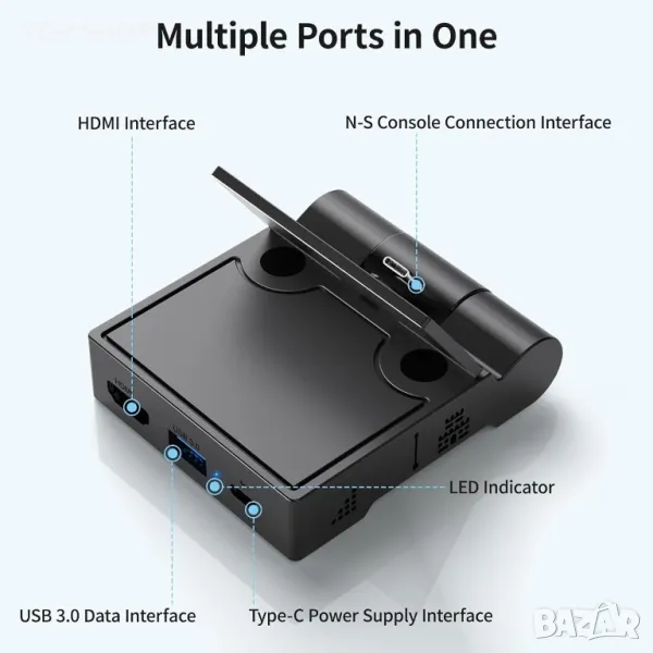Моля използвайте системата за съобщения! Просто изпратете запитване. По телефона се губи време за уточняването на търсения от Вас продукт.Switch Dock е универсално съвместим както с моделите Switch, така и със Switch OLED, включвайки HDMI порт, USB 3.0 порт и порт за променливотоков адаптер, поддържащи безпроблемна връзка и игра. Той може да се похвали с бърза 1080P HD проекция, осигуряваща зашеметяващи визуализации в рамките на 7-10 секунди. Проектиран с ефективна странична вентилация, той осигурява оптимален въздушен поток, като поддържа вашата конзола хладна и функционира гладко. Стабилността е подобрена с неплъзгащ се дизайн в долната част, осигуряващ сигурна основа и предотвратяващ случайно подхлъзване или падане. Неговият сгъваем дизайн подобрява преносимостта, което го прави идеален спътник за игри при пътуване или посещения при приятели.