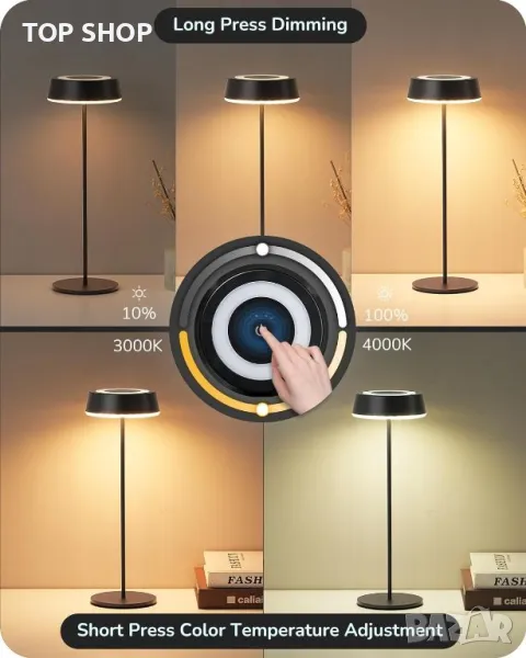EDISHINE Настолна лампа LED акумулаторна сензорна 2 цветни режима външна преносима - бяла, черна