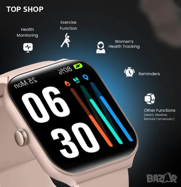 Моля използвайте системата за съобщения! Просто изпратете запитване. По телефона се губи време за уточняването на търсения от Вас продукт.Този смарт часовник предлага интеграция на Alexa и водоустойчивост IP68, което позволява гласови команди и съвместимост с интелигентни домашни устройства. Той разполага с 1,95-инчов сензорен екран с издръжливо панда стъкло, Bluetooth свързаност за обаждания и известия за съобщения и цялостно проследяване на здравето, включително сърдечен ритъм, кислород в кръвта, стрес и наблюдение на съня. Поддържайки над 100 спортни режима, той проследява ежедневните дейности като стъпки и калории. Устройството може да се похвали с дълъг живот на батерията, подходящо за iOS 9.0 и Android 6.0 и по-нови версии, с до 7 дни редовна употреба с едно зареждане. Допълнителните функции включват разнообразие от циферблати и опции за показване на известия в социалните медии.