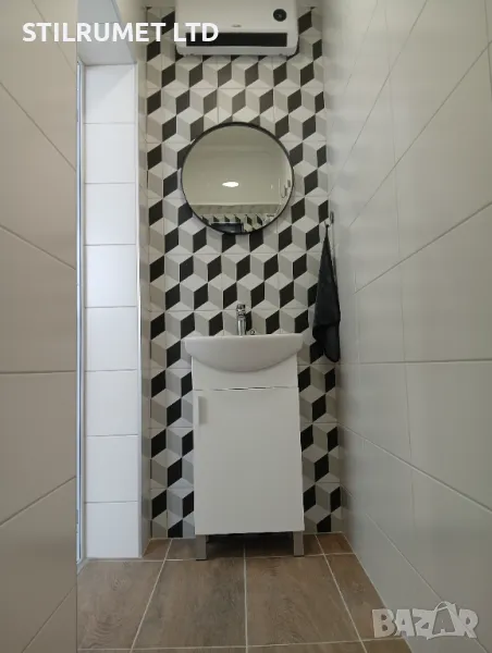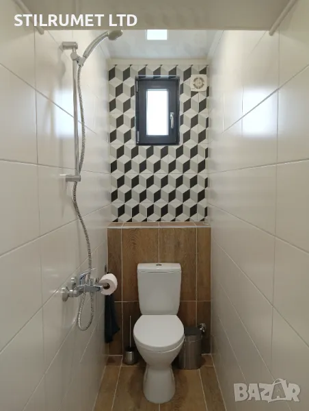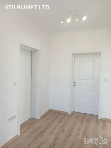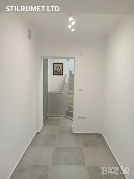 Напълно реновиран етаж от къща - 104 кв.м, състояща се от голям коридор, който води към вито стълбище излизащо на стълбищна площадка с вход към баня с тоалетна. Врата към вестибюл (с падаща стълба от тавана, водеща към голямо - складово помещение с площ: 84 кв.м.). Вестибюлът излиза към три просторни и светли стаи, оборудвани с контакти и съвременно осветление, една от стаите е подготвена с изводи за кухненски мебели. Имотът е многофункционален, подходящ както за живеене, така и офис с търговска дейност и други.