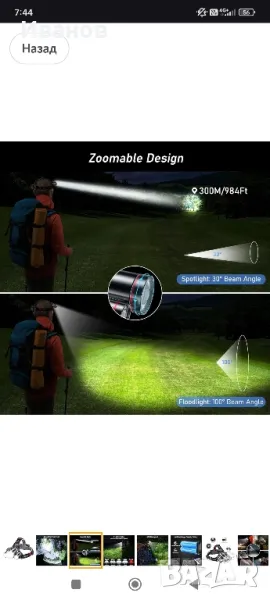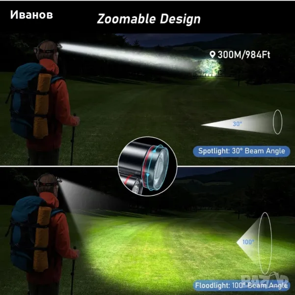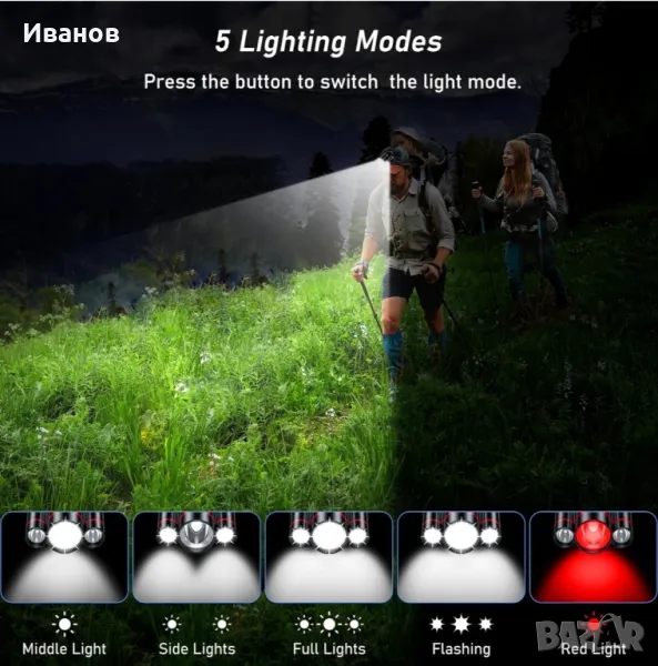 Супер ярък челник: високопроизводителният LED фар използва висококачествени T6 + XPE лампови перли, които са безопасни и издръжливи. Той има широк и широк светлинен диапазон с равномерен и стабилен лъч, можете да видите околната среда по-ясно, което прави нощните ви дейности по-безопасни.USB C акумулаторна: вградена 4400 mAh батерия с голям капацитет, която можете да зареждате чрез включения USB C кабел. Пълното зареждане отнема само 5 часа и е достатъчно, за да осигури дълги часове светлина за вашите дейности на открито. Не е необходима смяна на батерията, икономичен и екологичен.💡【5 светлинни режима и възможност за мащабиране】 Един бутон за управление на 5 светлинни режима: основна светлина (бяла светлина), странични светлини (бяла светлина), всички светлини (бяла светлина), всички светлини мигат (бяла светлина) и основна светлина (червена светлина). С дизайна с променливо увеличение можете да избирате между дифузен режим или режим на прожектор, като завъртите средната светлинна леща, за да регулирате фокуса. Червената светлина на гърба на фара предупреждава другите по всяко време.Удобен и регулируем на 90°: фарът може да се завърти на 90°, просто го преместете нагоре и надолу, за да регулирате свободно ъгъла на лъча, значително увеличавайки обхвата на осветяване и осветявайки всеки желан ъгъл. Позицията на фурнира е супер твърда и не се клати. Снабден с удобна и дишаща еластична лента за глава, той е лесен за регулиране и не се плъзга, така че можете да го използвате безопасно.Водоустойчив и универсален: IPX6 водоустойчив, със запечатано отделение за батерии, фарът има отлични водоустойчиви, прахоустойчиви и удароустойчиви характеристики. Регулируемата лента за глава може да се носи директно на главата или да се прикрепи към каска, идеална за бягане, къмпинг, колоездене, нощен риболов, туризъм, разходка на кучета, поддръжка на автомобил, спасяване, спешни случаи и др.ПРОИЗХОД Amazon USA
