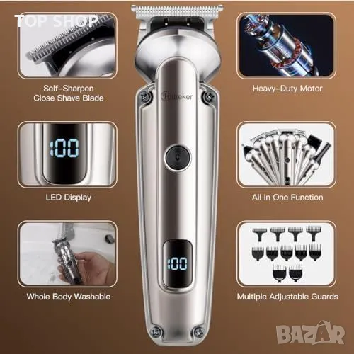 Нов Водоустойчив мъжки тример Hatteker комплект за подстригване самобръсначка → Обява 49341167