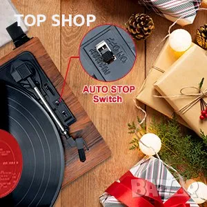 【Комбинация от ретро и мода】 Изработена от ретро дърво, съчетана с модерна модна технология, ви позволява да се наслаждавате на музика в ретро стил от винилови плочи или цифрова музика с безжична технология. Подвижният капак за прах поддържа вашия плейър чист и нов