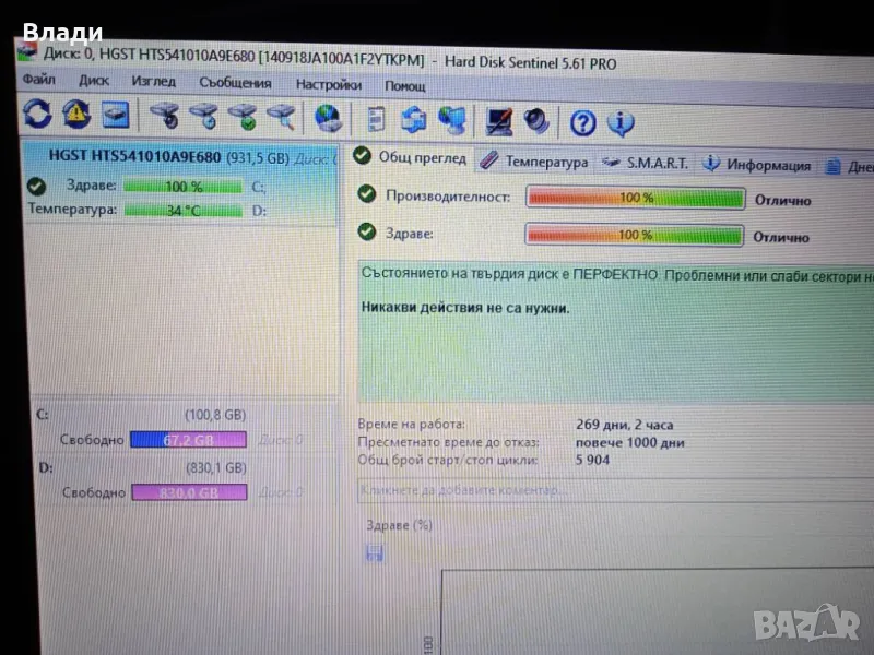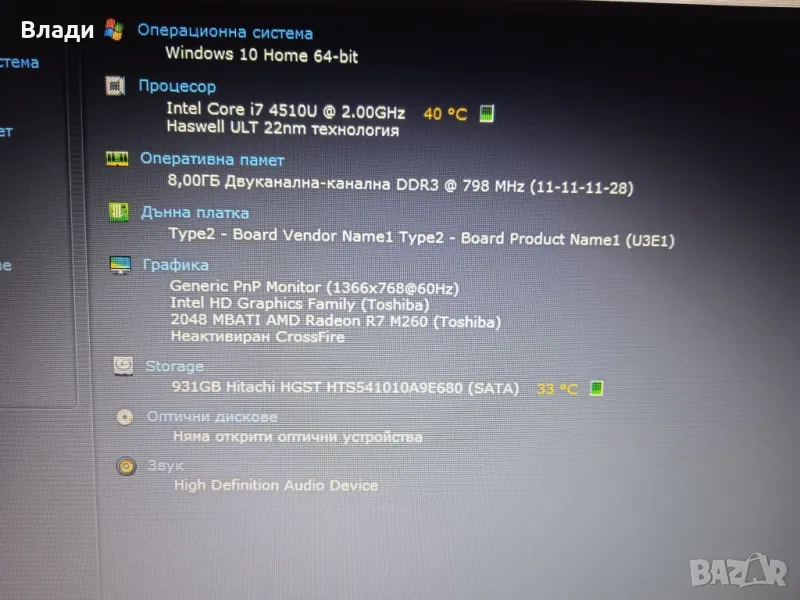Инсталиран с Windows 64 bit,HDD Sentinel,Speccy и Aida 64,за да се тества преди да се плати.