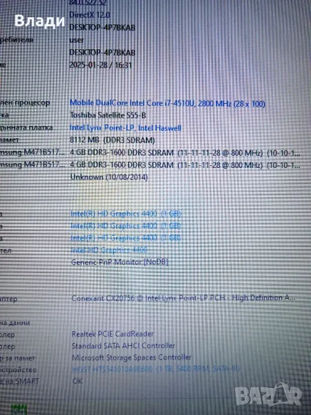 Toshiba S55-B Intel® Core™ i7-4510U/1TB/8GB/нова батерия/чанта → Обява 49341588