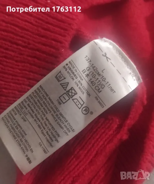 Gap детски пуловер, памук, полиестер и вълна, за 10-11 г.дете, L размер, снимка 1 - Детски пуловери и жилетки - 49341879 Gap детски пуловер, памук, полиестер и вълна, за 10-11 г.дете, L размер, снимка 2 - Детски пуловери и жилетки - 49341879 Gap детски пуловер, памук, полиестер и вълна, за 10-11 г.дете, L размер, снимка 3 - Детски пуловери и жилетки - 49341879 Gap детски пуловер, памук, полиестер и вълна, за 10-11 г.дете, L размер, снимка 4 - Детски пуловери и жилетки - 49341879 Gap детски пуловер, памук, полиестер и вълна, за 10-11 г.дете, L размер, снимка 5 - Детски пуловери и жилетки - 49341879 1/5