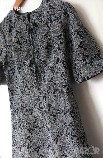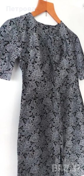 Официална дълга рокля, нова, на черен фон с изящни бели рози, които изглеждат като бродирани, с ръкав до лактите 28 см, отзад с дълъг цип 50 см, с джуфка на деколтето, гр. об. 90 см, талия 80 см, ханш 100 см, дължина 104 см, с кокетна цепка отпред 50 см. Цена 9 евро. Изпраща се с 10% отстъпка от общоприетата куриерска такса.