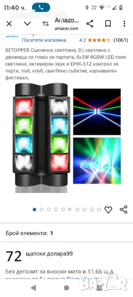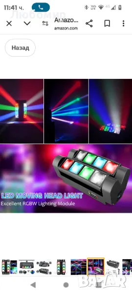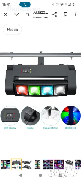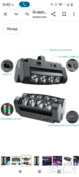 BETOPPER Сценична светлина, DJ светлина с движеща се глава за партита, 8x3W RGBW LED паяк светлина, активиран звук и DMX-512 контрол за парти, пъб, клуб, сватбено събитие, карнавален фестивал,Ъгъл на оста XY: 540 градуса, Y1: 120 градуса, Y2: 120 градуса, 8 магически лъча, всеки лъч може не само да създаде ефекта на преследваща светлина, но и да продължи да се люлее. LED светлината гарантира широка гама от проекти. С ефекта на сценичен дим/мъгла ефектът на лъча е по-забележим.Източник на светлина: Тази светлина има 8 LED светлинни перли с RGBW 4 в 1 червено, зелено, синьо и бяло, цветът може свободно да се променя и комбинира, за да донесе красиви визуални ефекти. Може да работи добре с високоговорителя, за да създаде зашеметяващ сценичен светлинен ефект.Тази движеща се сценична светлина поддържа 4 режима. 1. Автоматичен режим; 2. Активиран звук (вграден HD микрофон, стилът на осветяване се променя автоматично с музиката, ако реакцията на светлината не е чувствителна в режим на активиран звук, моля, регулирайте чувствителността сами); 3. Master-slave (синхронна работа на множество светлини); 4. DMX512.Лесен за използване: Движещата се глава на LED сценичните светлини може лесно да се управлява с бутони на контролния панел или DMX контролер. Може да се използва отделно или комбинирано за създаване на прекрасни сценични светлинни ефекти с разнообразие от различни светлини, перфектно осветление за партита, дискотеки, барове, клубове, бални зали, караоке вечери, семейно мазе, представления на живо, KTV, сватбена церемония и др.