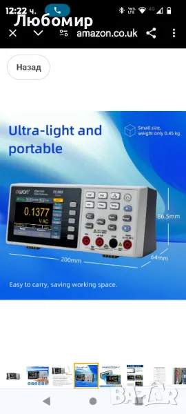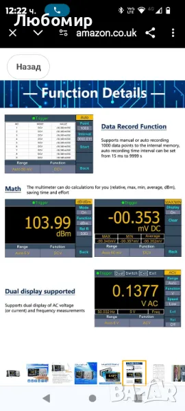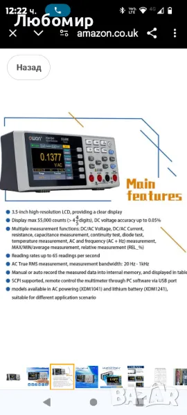 Дисплей 55000 броя, а точността на постояннотоковото напрежение е до 0,05%. 2. Множество функции за измерване: DC/AC напрежение, DC/AC ток, съпротивление, измерване на капацитет, непрекъснатост, диоден тест, измерване на температура, измерване AC+честота (AC+Hz), максимална стойност, минимална стойност, измерване на средна стойност (MAX/MIN/AVG), измерване на относителна стойност.3. Скорост на измерване до 65 пъти/сек. 4. Измерване на действителната ефективна стойност на AC, честотна лента на измерване: 20Hz-1kHz.Функция за ръчен запис или автоматичен запис, данните могат да се записват вътрешно и да се показват в таблица 6. Поддържа стандартна SCPI команда, комуникира с компютъра чрез USB (или RS232) интерфейс, осъществява дистанционно управление на инструмента 7. AC захранване, няма нужда от смяна на батерията, дълъг живот на батерията, не изисква поддръжка