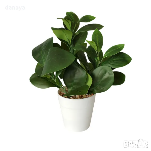 Изкуствено цвете в бяла саксия – 28 см, с големи широки листа.