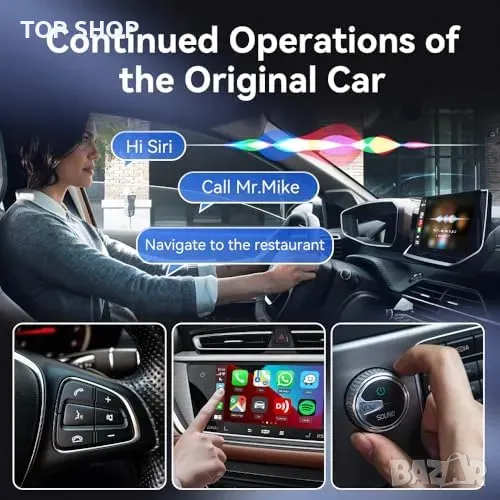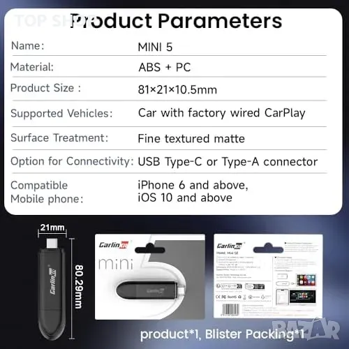 Ключови думи: безжичен CarPlay адаптер, 5GHz Bluetooth, Plug & Play, кола, iPhone, iOS 13, Siri, GPS навигация, музика, разговори, съобщения.