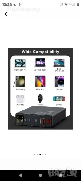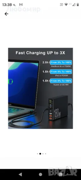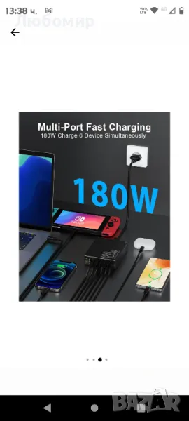 Мрежово зарядно 180W GaN, с LCD дисплей, 6 порта за зареждане,, снимка 1 - Оригинални зарядни - 49344081 Мрежово зарядно 180W GaN, с LCD дисплей, 6 порта за зареждане,, снимка 2 - Оригинални зарядни - 49344081 Мрежово зарядно 180W GaN, с LCD дисплей, 6 порта за зареждане,, снимка 3 - Оригинални зарядни - 49344081 Мрежово зарядно 180W GaN, с LCD дисплей, 6 порта за зареждане,, снимка 4 - Оригинални зарядни - 49344081 Мрежово зарядно 180W GaN, с LCD дисплей, 6 порта за зареждане,, снимка 5 - Оригинални зарядни - 49344081 Мрежово зарядно 180W GaN, с LCD дисплей, 6 порта за зареждане,, снимка 6 - Оригинални зарядни - 49344081 Мрежово зарядно 180W GaN, с LCD дисплей, 6 порта за зареждане,, снимка 7 - Оригинални зарядни - 49344081 Мрежово зарядно 180W GaN, с LCD дисплей, 6 порта за зареждане,, снимка 8 - Оригинални зарядни - 49344081 Мрежово зарядно 180W GaN, с LCD дисплей, 6 порта за зареждане,, снимка 9 - Оригинални зарядни - 49344081 Мрежово зарядно 180W GaN, с LCD дисплей, 6 порта за зареждане,, снимка 10 - Оригинални зарядни - 49344081 1/10
