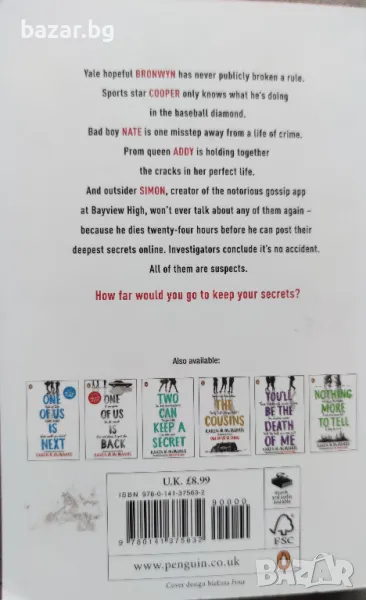 Продавам книгата One of us is lying - Karen M. McManus на английски език/Books in English → Обява 49344799
