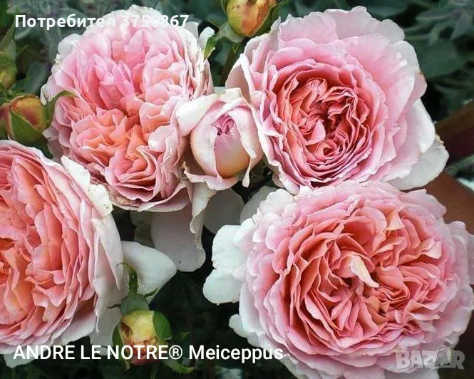 рози, с около 1,2 милиона продадени рози годишно и повече от 500 референции. Сортовете Meilland са обект на патенти, сертификати за сортове растения и търговски марки, за да се гарантира популяризирането им в повече от 40 страни. Френското производство, обхваща близо 2500 декара при различни почвени и климатични условия, което позволява по-голяма сигурност на производството и по-добро адаптиране към нуждите на клиентите.🌹🌹🌹 Характеристики:Клас: Едроцветна храстовидна роза – ROMANTICA®Употреба: Изолирани, стени и огради, букетиФорма: ROMANTICA®Цвят: много светло ориенталско розовоДиаметър: 12 смБрой венчелистчета: приблизително 60Аромат: мощна, интензивна майска розаЛиста: Гъста, средно зеленаУстойчивост на болести: ОтличнаСъцветие: единичен цвятЦъфтеж: от пролетта до замръзванеВисочина: 90/110 см🌹🌹🌹 Награди:2000:Рим, Италия: Златен медалМонца, Италия: Короната на кралица Теодолинда, най-ароматната розаМадрид, Испания: СертификатЖенева, Швейцария: Парфюмна купаКутраи, Белгия: златен медал2001:Монца, Италия: Public Rose 2000Барселона, Испания: Парфюмни награди🌹 Розовият храст ANDRE LE NOTRE® Var. Meiceppus има розов, плодов аромат на кайсия, светъл ориенталски розов цвят и форма на цвета, напомняща стара роза, но устойчивостта му към болести е много по-голяма. Един от страхотните розови храсти на Meilland, който съчетава цъфтеж, аромат и голяма устойчивост на болести.🌹 Розите са засадени в работни саксии и могат да се засаждат на постоянно място от ранна пролет до късна есен.👉👉👉 Цена 34,00 лв.🚘📦🚘 Изпращаме с куриер.а може да направите поръчка и на телефони:☎️💌☎️ Reni's Gardens +359888873211 +359886771048#рози #ANDRELENOTRE®Meiceppus #Meilland #красивирози #ароматнирози