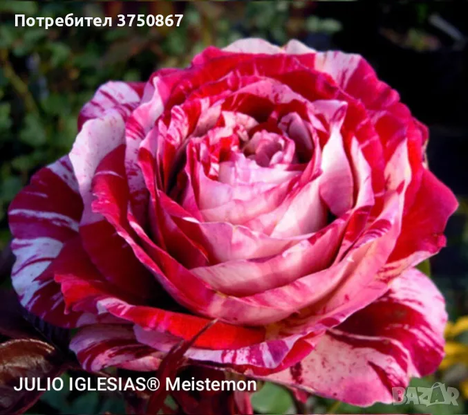 РОЗА🌹 JULIO IGLESIAS® Meistemon 🌹Meilland е водещият френски производител на рози, с около 1,2 милиона продадени рози годишно и повече от 500 референции. Сортовете Meilland са обект на патенти, сертификати за сортове растения и търговски марки, за да се гарантира популяризирането им в повече от 40 страни. Френското производство, обхваща близо 2500 декара при различни почвени и климатични условия, което позволява по-голяма сигурност на производството и по-добро адаптиране към нуждите на клиентите.🌹🌹🌹 Характеристики:Клас: Храстова едроцветна розаУпотреба: Изолирани, стени и огради, букетиФорма: ТрадиционнаЦвят: Червено и бяло райеДиаметър: 10-11 смБрой венчелистчета: приблизително 50-52Аромат: Мощен, Вербена от МадагаскарЛиста: Гъста, блестяща тъмнозеленаУстойчивост на болести: Много добраСъцветие: единичен цвятЦъфтеж: от пролетта до замръзванеВисочина: 70/80 см🌹🌹🌹 Необикновен розов храст кръстен на най-великия чаровен певец на всички времена. Оригиналният цвят на тази роза, много светло кремав, до голяма степен изпъстрен с червени ивици, и нейният много силен аромат с нотки на цитрусови плодове и лимонена върбинка от Мадагаскар допринасят за нейния успех. Растение с храстовиден хабитус, което се радва на непрекъснат цъфтеж. Тази роза стои добре във ваза.🌹 Розите са засадени в работни саксии и могат да се засаждат на постоянно място от ранна пролет до късна есен.👉👉👉 Цена 34,00 лв.🚘📦🚘 Изпращаме с куриер може да направите поръчка и на телефони:☎️💌☎️ Reni's Gardens +359888873211 +359886771048#рози #JULIOIGLESIAS®Meistemon#Meilland #красивирози #ароматнирози