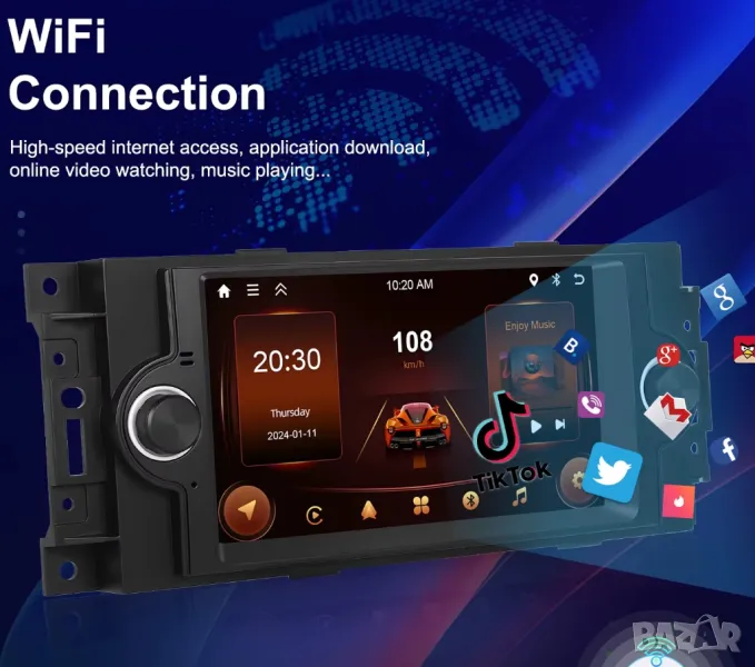 Wi-Fi интернет, новият Андроид, Bluetooth за разговори и музика, USB входове за флашка и зареждане на устройства, GPS навигация, теми за вид на меню, еквалайзер за настройка на звука, бърза реална RAM памет от ново поколение. ТОП дизайн!