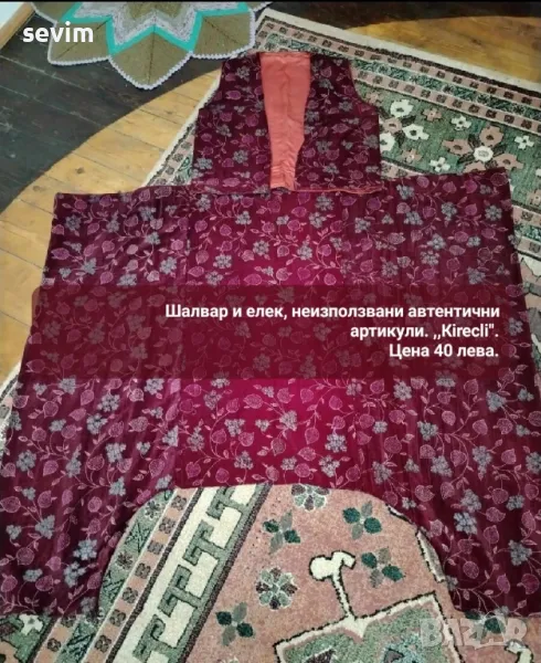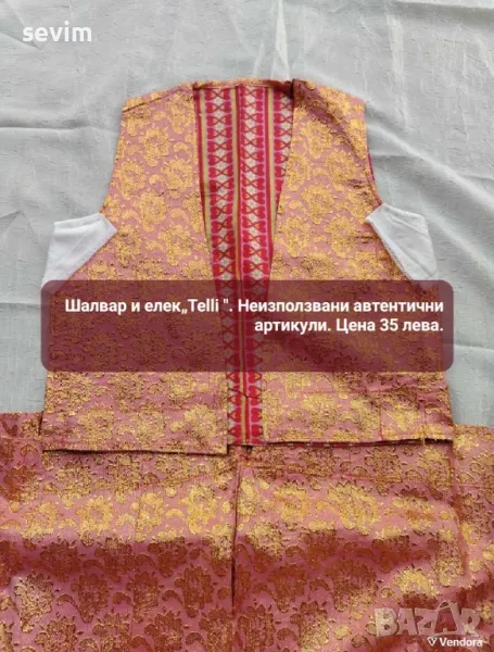 Разполагам с 6 комплекта носии. Всеки комплект се състои от шалвар и елек. На всяка снимка има цена.