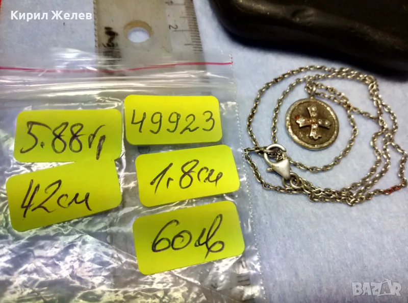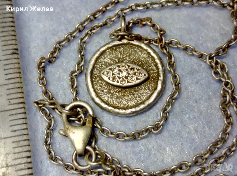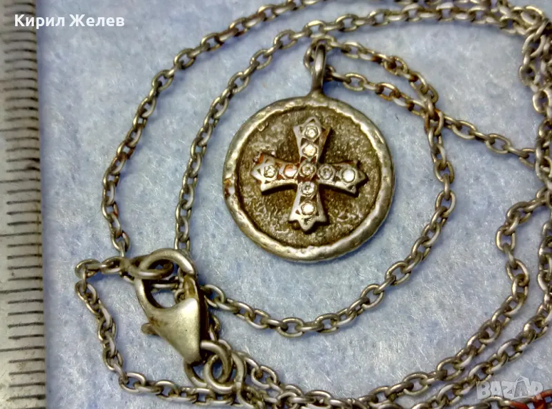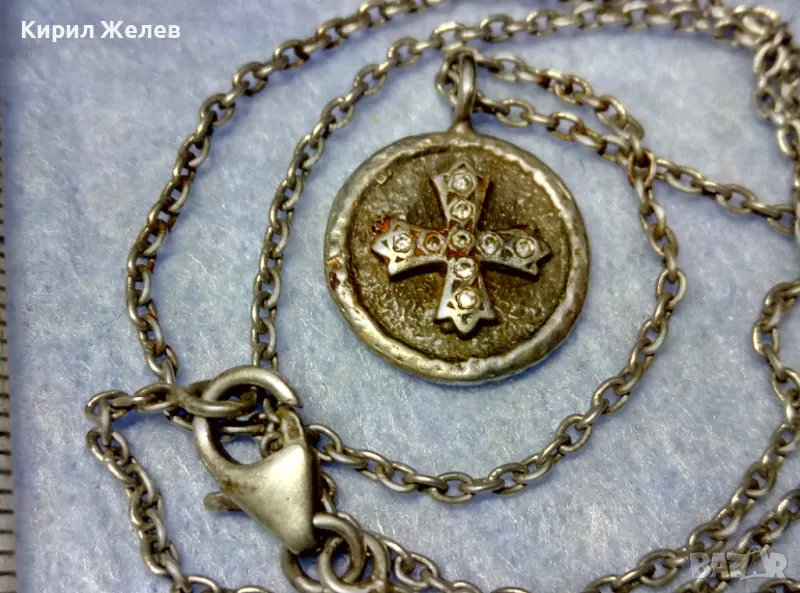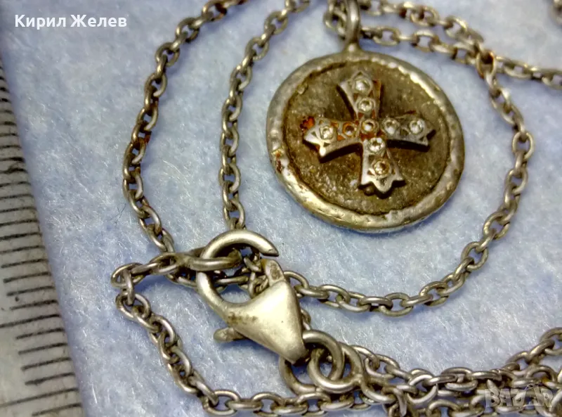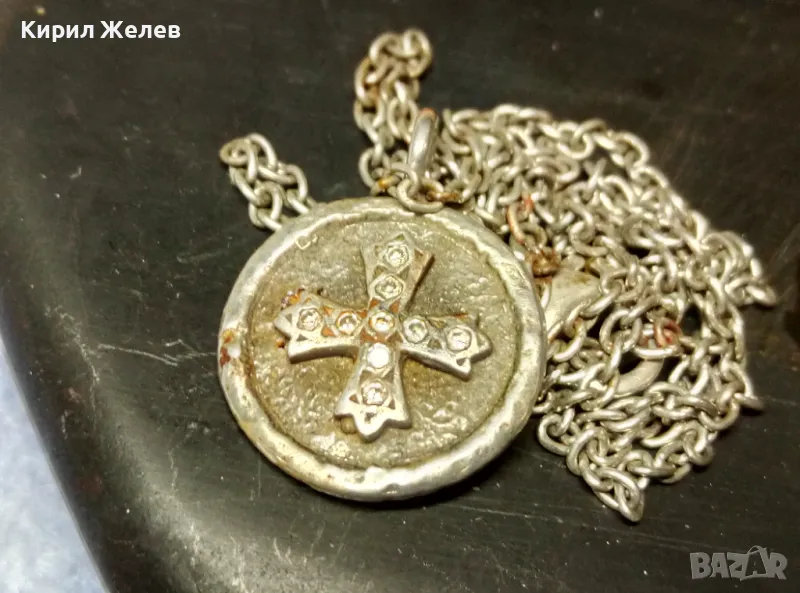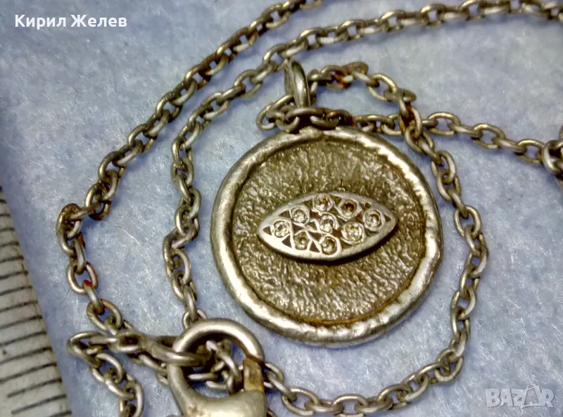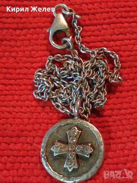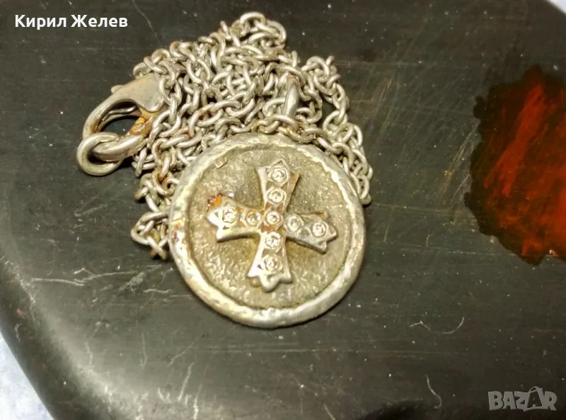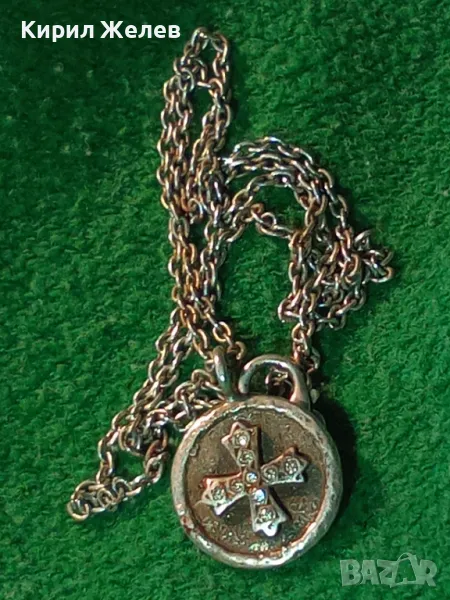 Стар ДВУСТРАНЕН РЕЛИГИОЗЕН СРЕБЪРЕН МЕДАЛЬОН КОЛИЕ СРЕБРО 925 РЪЧНА РЯДКА АРТ РАБОТА с ЦИРКОНИ 49923