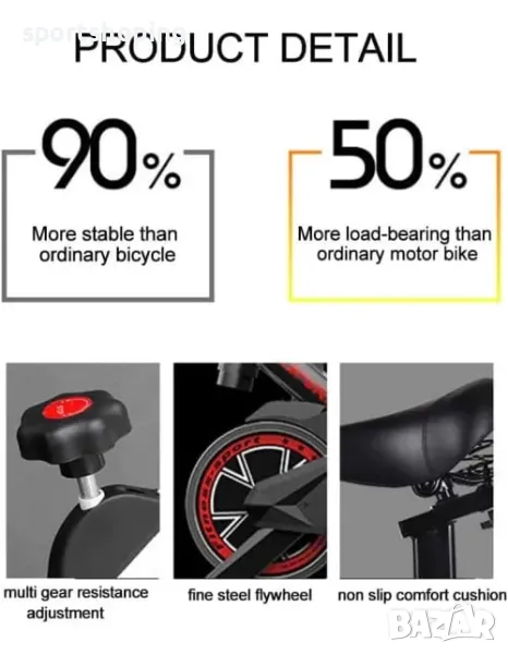 е устойчива на корозия. 2. Дебелината на основната тръба е 1,5 мм, така че да може да носи тегло до 150кг. Комфорт - Дръжките на греблата от гумена пяна удължават продължителността на вашата тренировка. Педалите с щипки за пръсти с каишки ще предотвратят подхлъзване на краката. Велотренажорите Spin ви осигуряват меко и удобно изживяване по време на тренировка. Устойчивост