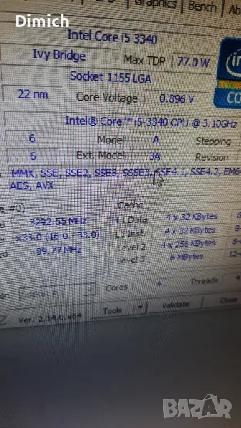 Компютър i5 3340 Intel DH61WW Ram 8gb HD4600 Hdd 500gb
