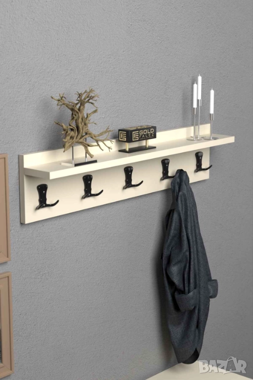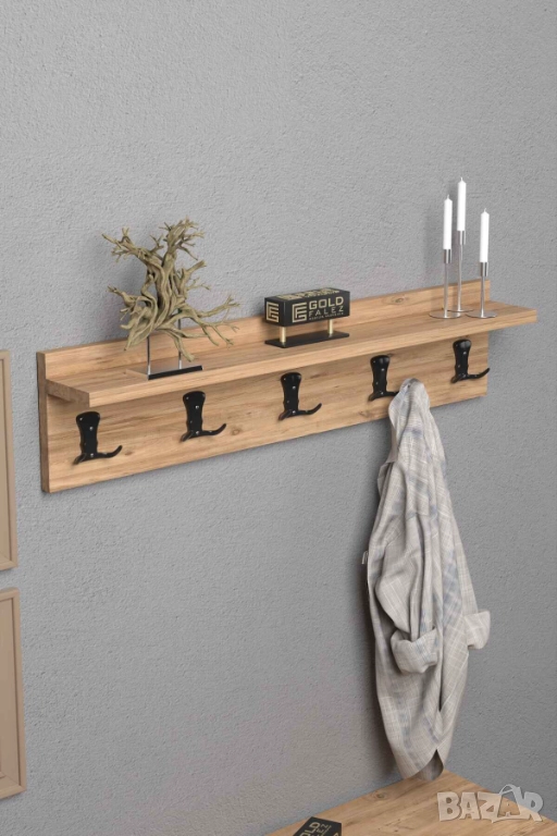 Дървена закачалка за стена - 5 цвята / Стенна закачалка
