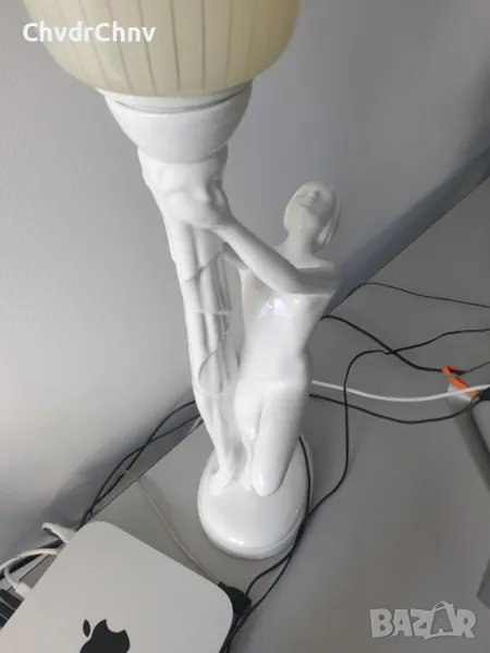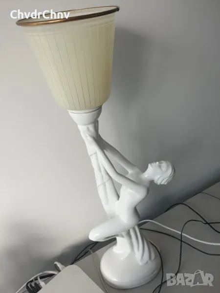 66см стара италианска порцеланова настолна лампа с фигура на гола жена/еротика/Art Deco статуетка