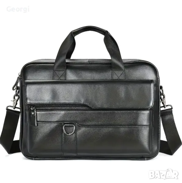 Мъжка стилна и практична бизнес чанта (куфарче за лаптоп 15”) Черна естествена кожа!