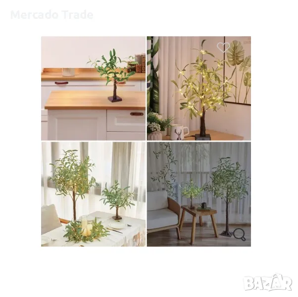 Декоративна LED лампа Mercado Trade, бамбукова лампа за дърво с 36 топли LED светлини върху квадратна основа.