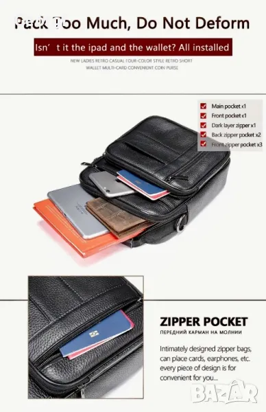 Многофункционална с 4 модерни ципа, луксозен хастар, удобна достъпност и стилно излъчване + четири практични отделения.