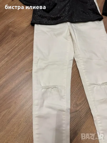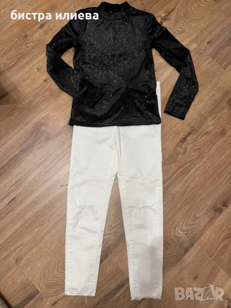 Много красива оригинална блузка и бели дънки за момиче 10-12г ,като нови са.