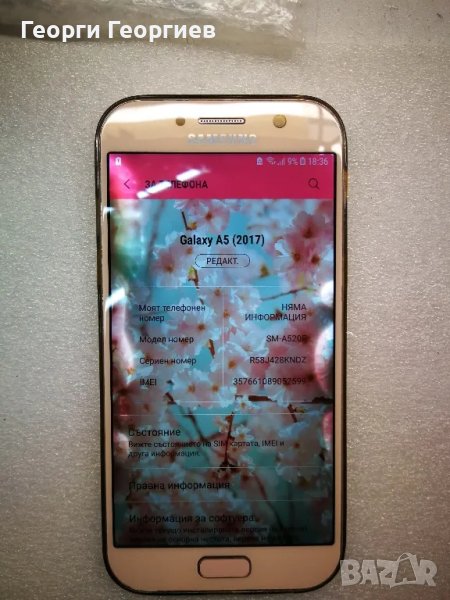 Samsung A5 2017 SM-A520F Pink - розов. Тъмен, с петна на дисплея. Тестван. Работи отлично.