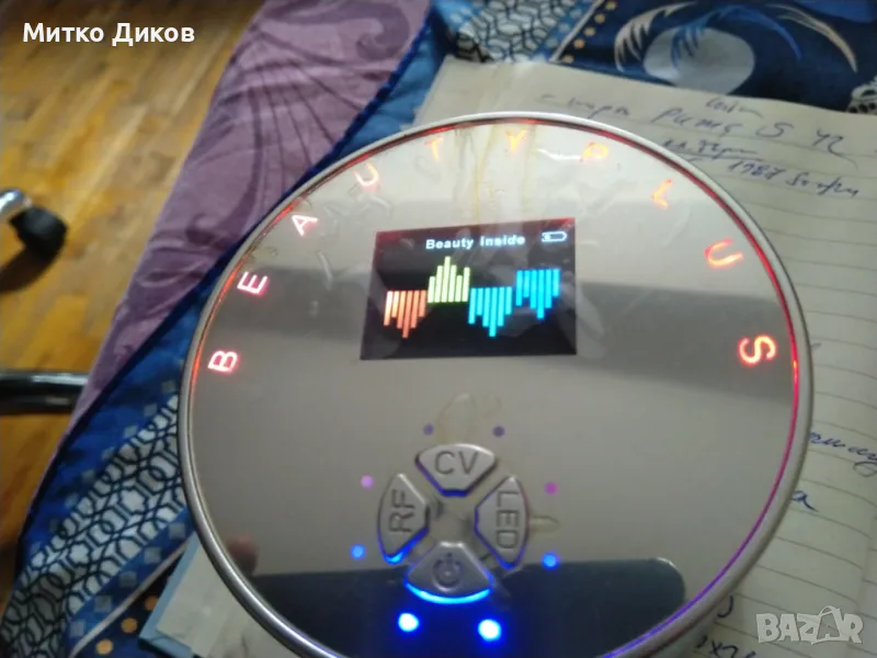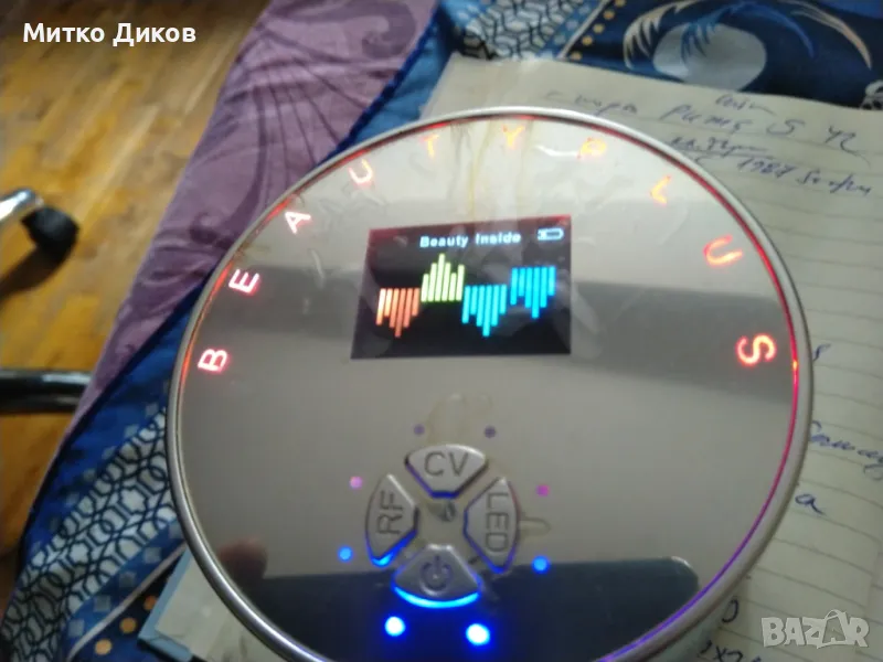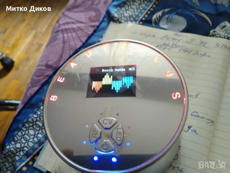 Мултифункционален портативен уред за лице и тяло 3 в 1, комбиниращ три технологии: радиочестотен лифтинг, ултразвукова кавитация и LED терапия с червена/синя светлина. Много подходящ за проблемни зони като бедра, ханш, талия, ръце и лице.Уредът е с три режима на работа:RF радиочестотна терапия използва до 6 милиона вибрации в секунда. Те генерират топлинна енергия дълбоко в слоевете на кожата. Това води до засилено кръвообращение, стимулиране на метаболизма и естествено производство на колаген. В резултат на това се оформя силуета, редуцират се мастните натрупвания и целулита, стяга се отпуснатата кожа и намалява фините линии и бръчки.Ултразвукова кавитация е терапия, произвеждаща вибрации с висока честота до 1 MHz. Те достигат до мастните клетки, намиращи се в дълбоките слоеве на кожата.Предимства:Разбива мастната тъкан под кожата;Премахва целулита;Намалява обиколката на зоната, която третирате;Моделира контура на тялото.LED терапия с червена/синя светлина комбинира синя и червена фотонна светлина с висока интензивностПредимства:Стимулира клетъчната регенерация;Засилва производството на колаген;Възвръща младежкия вид на кожата;Подобрява цялостното състояние на кожата.Преди употреба използвайте задължително гел, лосион или есенция върху зоната, която ще третирате. За максимален ефект по време на процедурата поддържайте кожата си влажна.Всяка терапия е настроена автоматично за пет минутен режим на работа, след което уредът преминава в режим готовност за 2 минути и ако не се използва се изключва автоматично.Комплектът включва:1 брой устройство;1 брой USB кабел;с кутия. Уредът не е ползван. Найлона отгоре си личи.Включван е и работи. Няма следи от употреба.