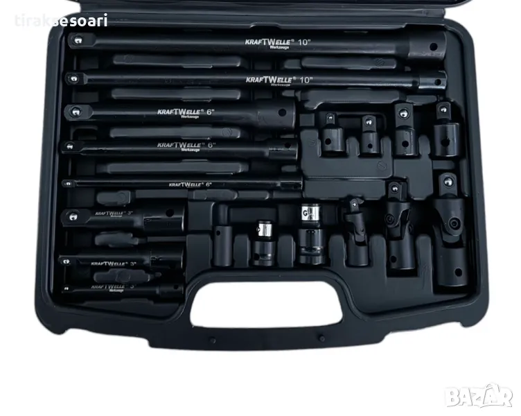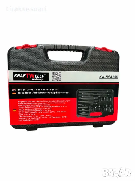 Комплект ударни преходници и удължения 18 части 1/4",3/8", 1/2" KraftWelle