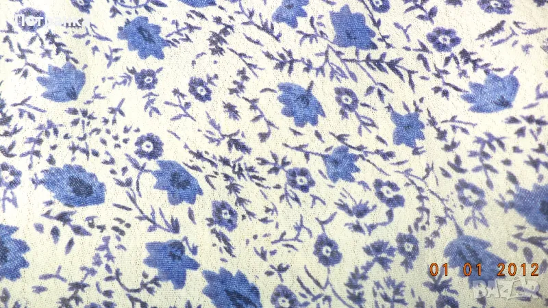 ДАТСКА бяла пола от естествена коприна, кройка клош, на сини цветчета. В отлично състояние.