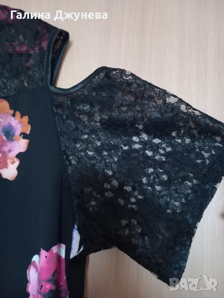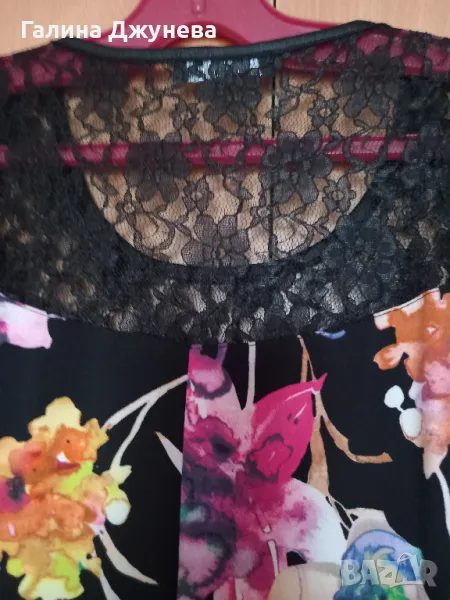 Лятна пъстра туника на цветя с открити рамене и дантела на деколтето и ръкавите. Материята е лека и приятна Туниката е нова, без етикет, само е мерена.