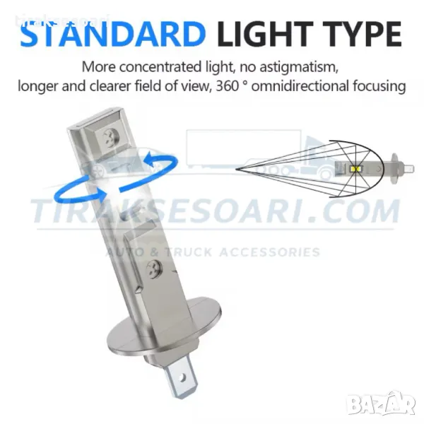 Най-новия модел LED Диодни крушки H1 за директен монтаж - без преправяния, без преходници, без смущения на радиото.