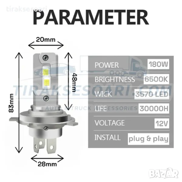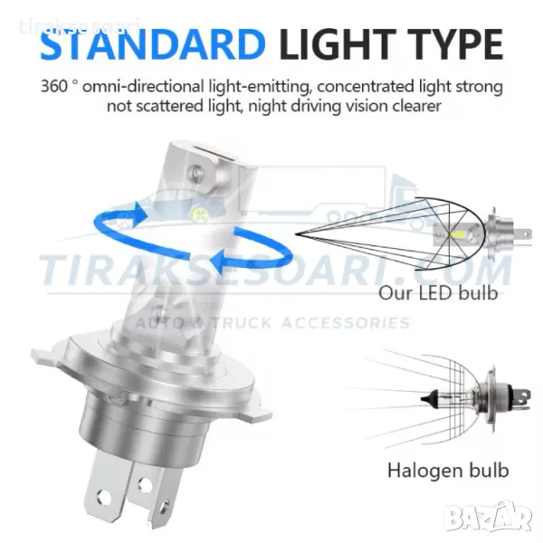 крушки H4, диодни крушки, мини лед диодни крушки, стандартен размер крушки H4, крушки за директен монтаж H4, крушки за фарове H4, диодни крушки H4 мини размер