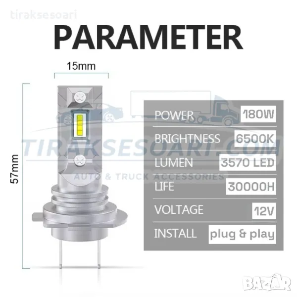 крушки H7, диодни крушки, мини лед диодни крушки, стандартен размер крушки H7, крушки за директен монтаж H7, крушки за фарове H7, диодни крушки H7 мини размер