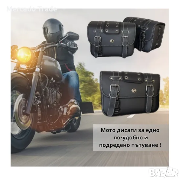 Мото дисаги Mercado Trade, Еко кожа, 26x20x13см, Черен Мото дисаги от висококачествена еко кожа с