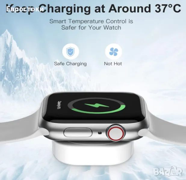 37 C за по-безопасно зареждане. Интелигентен контрол на температурата за минимизиране на загубата на мощност и решаване на проблема с топлината. Поддържането на температура около 37 C е по-безопасно за вашия часовник Apple Watch.