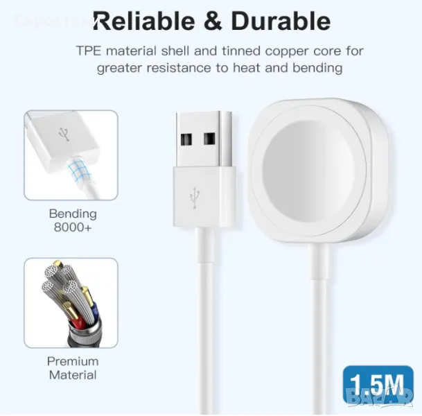 Магнитно зарядно за Apple Watch , 1,5 m кабел за бързо магнитно зареждане.